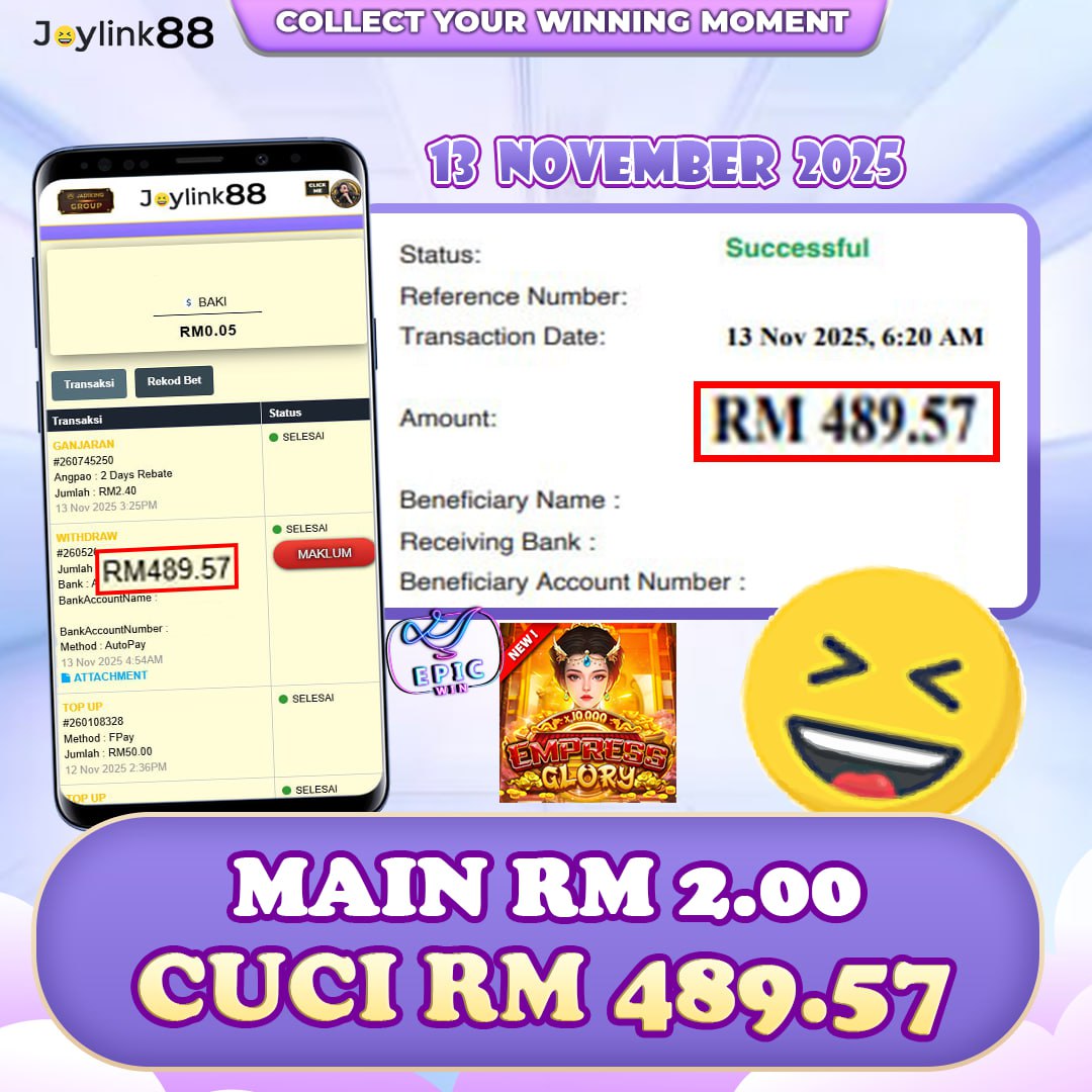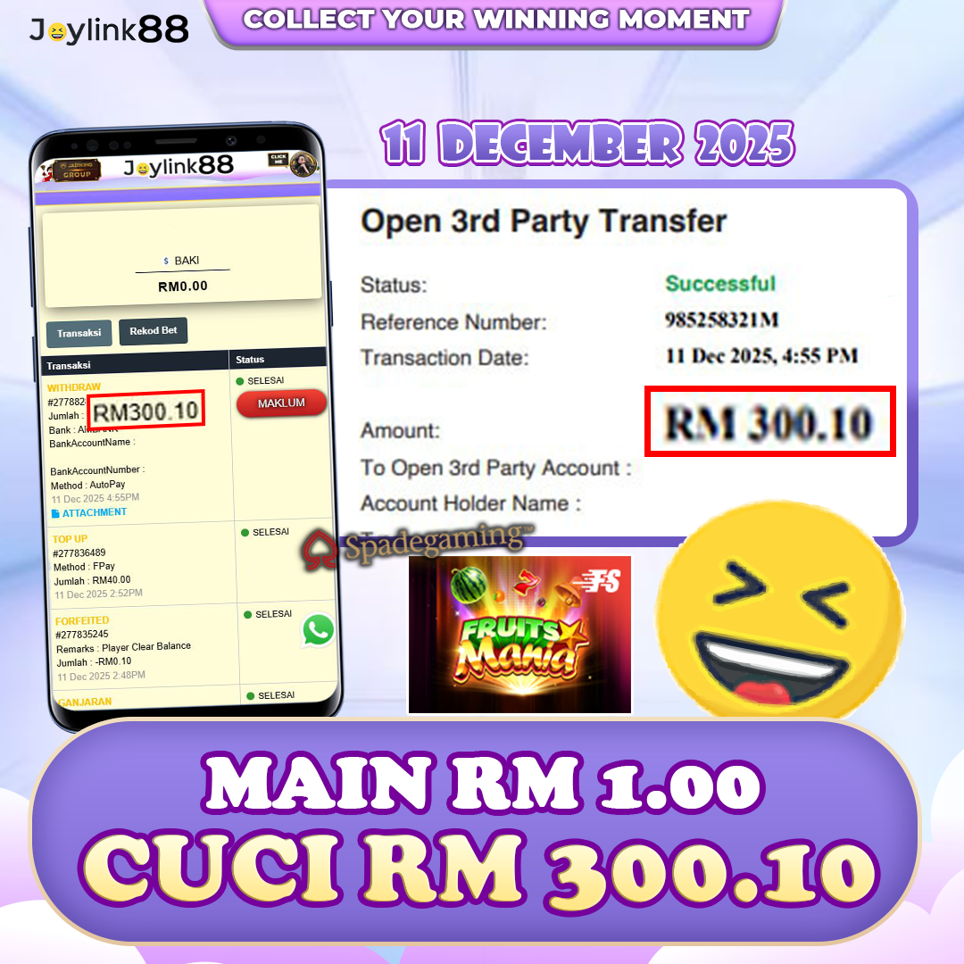 - Save Joy.link free kredit RM100 for weekend tournaments with boosted jackpots for higher withdrawal potential.